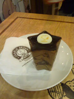 Last Saturday i was having my desserts with my friend in Charlie Brown Cafe in Straits Quay, the cafe is very nice and cute all decorated with the snoopy and his friends, many people visiting there and taking photos there. I ordered the choc banana moouse and a ice latte, my friend ordered the tiramisu and a fruit drink, we also took away some desserts.
